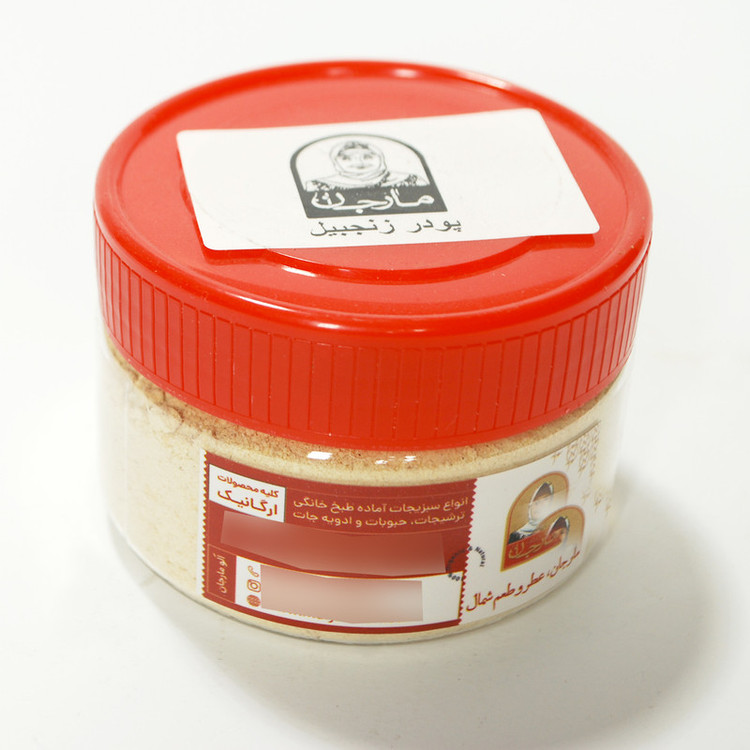 پودر زنجبیل مارجان کاملا خالص تهیه شده از بهترین محصول موجود در بازار در ظرف پت مناسب آشپزی و آشپزخانه.طرز مصرف جهت تهیه چای زنجبیل یک قاشق چایخوری پودر خشک زنجبیل ، را به همراه آب جوش با حرارت ملایم جوشانده و سپس کمی عسل به آن اضافه کرده و آن را میل نمایید .