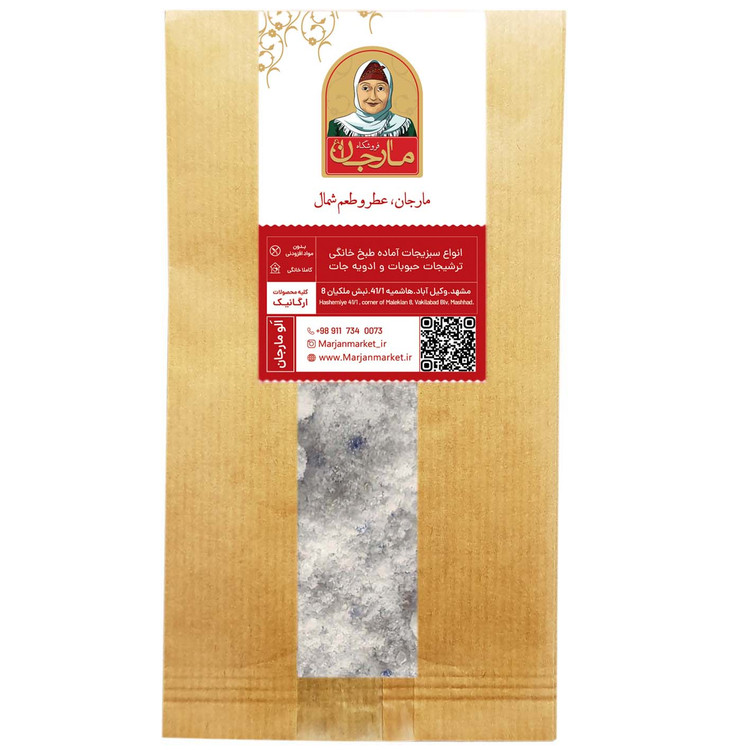 نمک آبی مارجان از معادن نمک گرمسار در استان سمنان استخراج میشود. این نمک بهعنوان یکی از کمیابترین نمکهای دنیا، فقط در ایران یافت میشود. به همین دلیل نمک آبی با نام نمک ایرانی یا نمک آبی فارسی نیز شناخته میشود. یک نمک سنگی است که از تبخیر آب دریاچههای شور یا آب دریا به دست میآید.این نمک خوراکی به دلیل وجود عنصر منیزیم به رنگ آبی دیده میشود. توجه داشته باشید هنگامیکه نمک آبی آسیاب میشود، دانههای آن سفید هستند و رنگ آبی فقط در کریستالهای بزرگ دیده میشود. از لحاظ طعم و مزه نیز، نمک آبی شروعی شور و قوی و پایانی ملایم و دلپذیر دارد. بهطور کلی نمک آبی فارسی بیشتر بهعنوان یک گزینه لوکس و سالم برای افزودن به غذاها شناخته میشود.