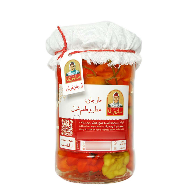 ترشی فلفل ستاره ای مارجان با وسواس فراوان از محصولات درجه یک استان گیلان انتخاب و تولید میگردد. این ترشی خوشمزه کنار غذا مصرف می شود. فلفل ستاره ای یکی از انواع صیفیجات خوشمزه و تند بوده که شکل ظاهری آن شبیه به ستاره ای توپر است.تمام محصولات مارجان ارگانیک و بدون مواد نگه دارنده است پس بهتره در یخچال نگهداری شود