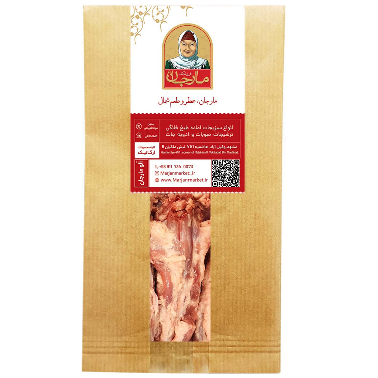 دنبالچه گوسفندی مارجان از استخوان ساکروم گوسفند به دست می آید که در انتهای ستون فقرات آن قرار دارد. این محصول به دلیل پیچیدگی زیاد بافت چربی میان بافت عضلانی قابل تفکیک نبوده و همراه با استخوان و چربی عرضه می شود. دنبالچه گوسفندی مارجان محصول کشتار روز می باشد که پاک شده و منطبق با اصول بهداشتی، بسته بندی می شود و در اختیار مشتریان قرار می گیرد. دنبالچه گوسفندی مارجان دارای خواص فراوانی می باشد و سبب لعاب دادن به غذا می شود. چربی های موجود در بافت در هنگام پخت ذوب شده و به خورد غذا می رود.