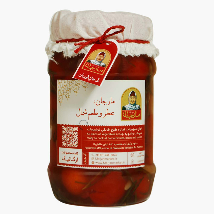 گوجه شور فروشگاه مارجان تهیه شده از گوجه درجه یک موجود در بازار محصول استان گیلان کاملا ارگانیک بدون مواد نگه دارنده در بسته بندی پت از جنس پلی اتیلن.شوری و ترشی از دیرباز مورد استفاده و علاقه مردم بوده است. در قدیم برای این که بتوانند سبزیجات را در طول سال داشته باشند، از شوری و ترشی استفاده می کردند. شور شدن و استفاده از سرکه در ترشی ها، باعث ماندگاری سبزیجات می شود.