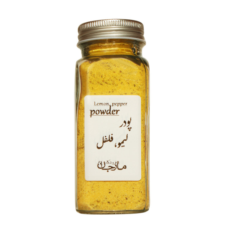 لیموفلفلی مارجان در بسته بندی شیشه مک کارتی با سر پوش شیشه ادویه مکارتی (12*5سانتی) همراه با لیبل ضد آب و در نمک پاش و درب کانتینری،ترکیبی از دانه های فلفل سیاه است که با پوست لیموی خشک و پودر شده و مقداری نمک ترکیب شده تا ادویه ای شگفت انگیز با مزه و بویی عالی بسازد. در حالت عادی ممکن است کم پیش بیاید که لیمو و فلفل را همزمان برای آشپزی به کار ببرید اما با یکبار مصرف این ادویه نو ظهور، به خیل طرفداران آن خواهید پیوست.