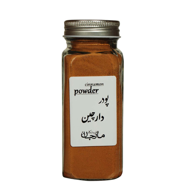 پودر دارچین کاسیا و سریلانکا مارجان در بسته بندی شیشه مک کارتی با سر پوش شیشه ادویه مکارتی (12x5سانتی) همراه با لیبل ضد آب و در نمک پاش و درب کانتینری.دارچین یکی از خوشمزهترین و سالمترین ادویههای روی کره زمین است و برای کاهش سردی و گرم شدن بدن و هضم موثر غذا مفید است؛ ضمن اینکه مفرح و شادی بخش است.