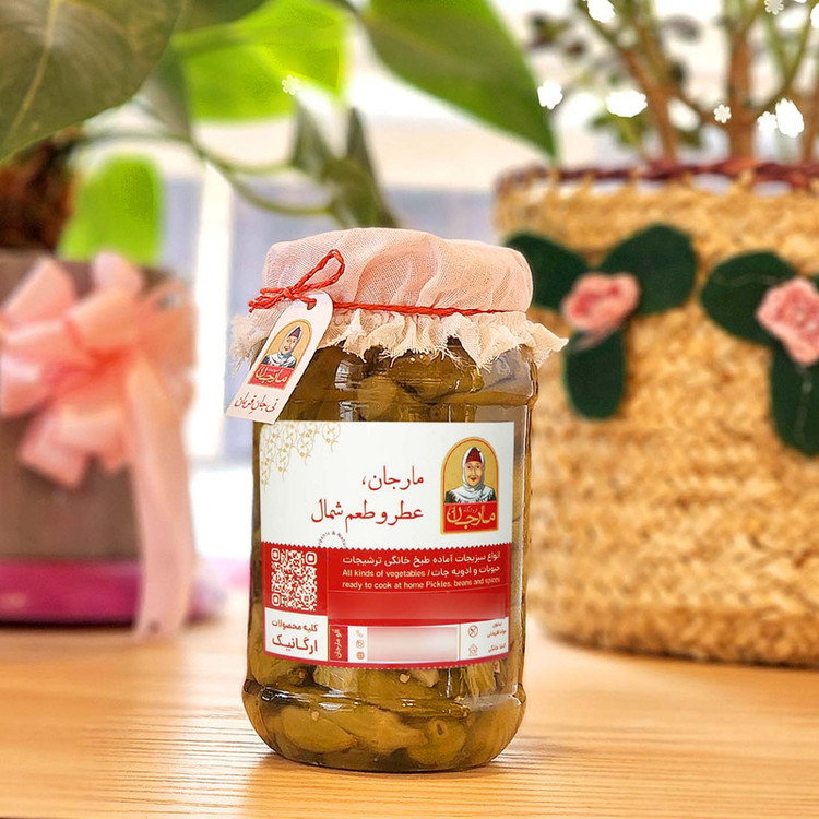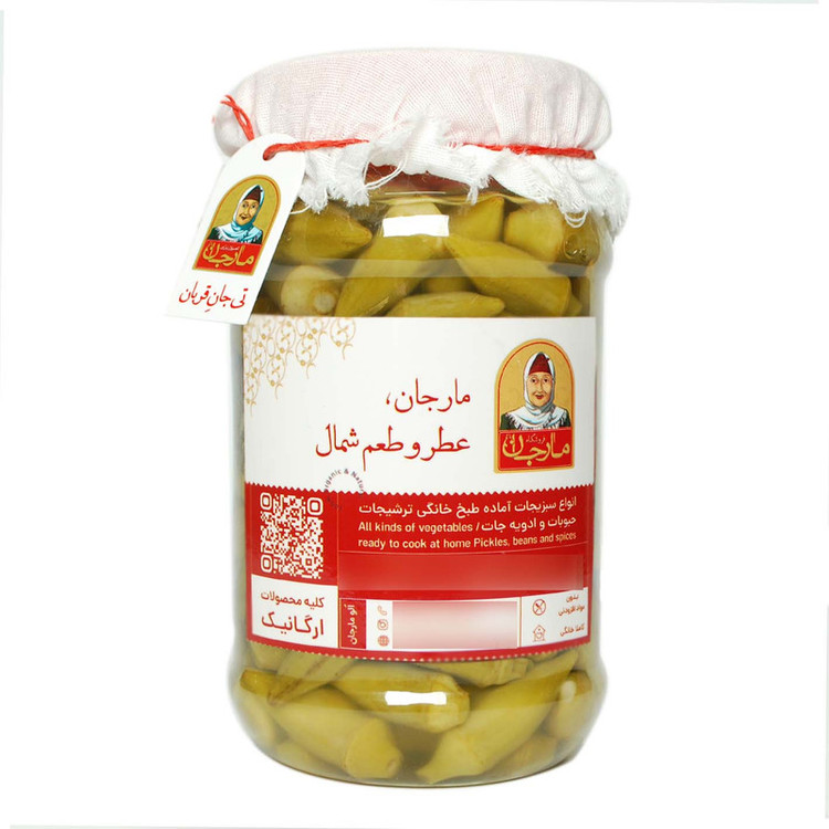 بهترین و مرغوب ترین نوع بامیه و سرکه برای تهیه ترشی بامیه مارجان استفاده میشود وکاملا طبیعی هستند.ترشی بامیه یکی از انواع ترشی های اصیل و سنتی ایرانی است.بامیه سرشار از ویتامینهای آ، ث، ب 2، ب 5 و ب 6 و عناصر منگنز، کبالت، لکسیم، فسفر، پتاسیم، و همچنین پروتئین و فیبر و ماده لزج، می باشد.تمام محصولات مارجان ارگانیک و بدون مواد نگه دارنده است پس بهتره در یخچال نگهداری شود.مارجان تی جانِ قوربان.مارجان تی جانِ قوربان