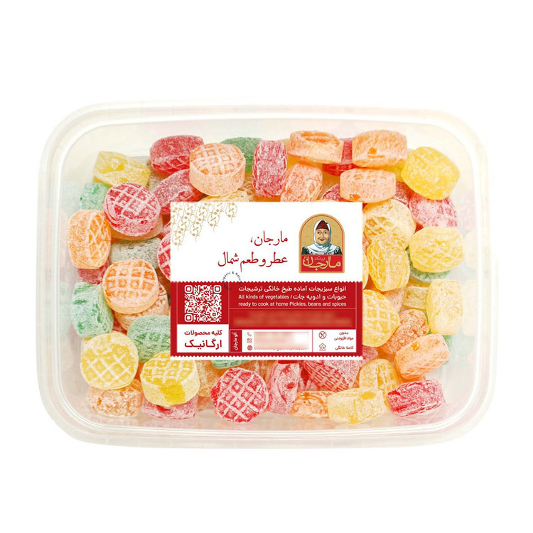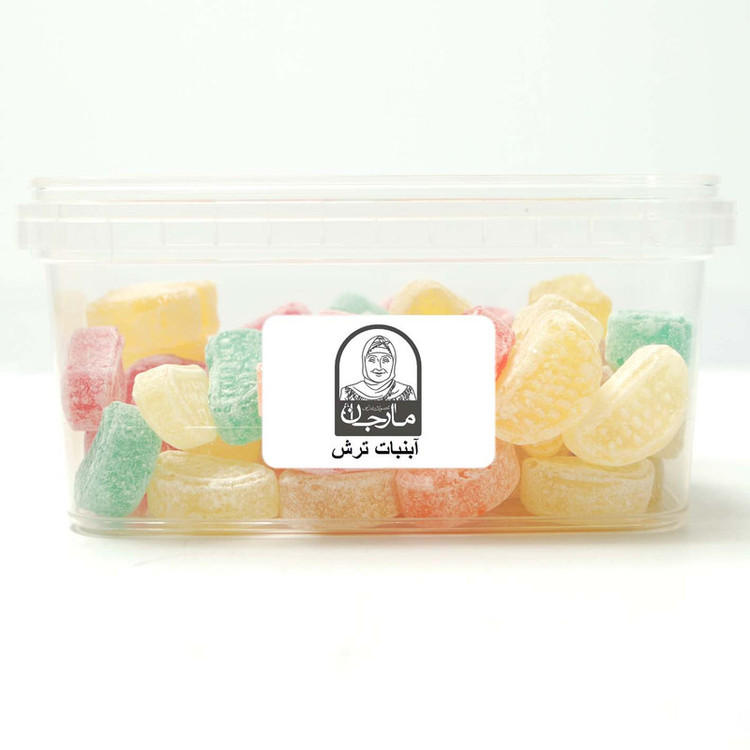 آبنبات ترش مارجان در بسته بندی طب دارای استاندارد فود گرید غذایی.آبنبات های ترش دارای میزان شکر کمتری بوده و با اسانس های طبیعی و از میوه های ملس تر تهیه می شوند که ممعمولا به شکل گرد و بیضی می باشند.این آبنبات ها عمدتا از عصاره یک یا چندین میوه تشکیل شده آبنبات ترش مارجان نوستالژی خانه مادربزرگ با کیفیتی مثال زدنی و بهداشتی کاملا بومی محلی