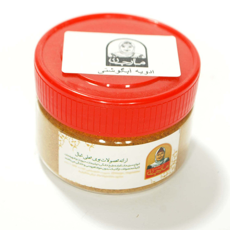 ادویه آبگوشت مارجان.آبگوشت یکی از غذاهای لذیذ، اصیل و پرطرفدار در کشور ما است که طرز تهیه آن فوت و فنهایی دارد. یکی از فوت و فنهای طبخ دیزی خوش عطر و طعم و به سبک دیزیهای سنتی، استفاده از ادویه مخصوص و مناسب این غذا است. ادویه آبگوشت طعمی بینظیر به این غذا میدهد و در عین حال به خوش رنگ و بو شدن این غذا هم کمک میکند.