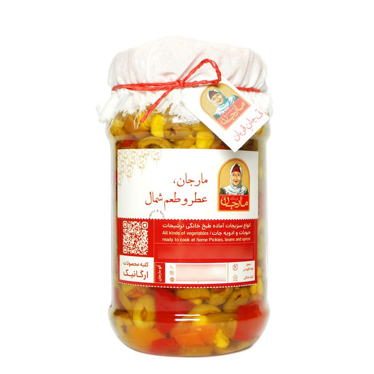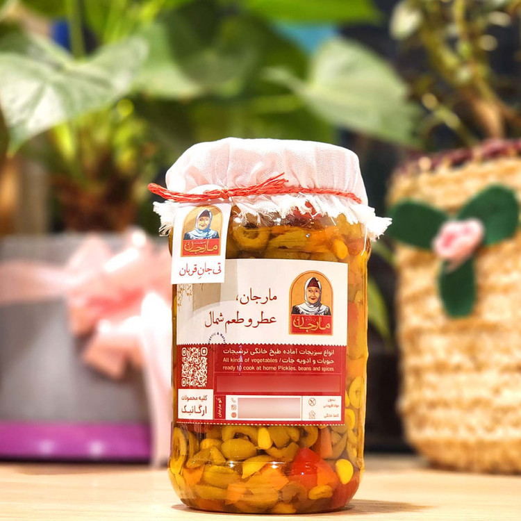 مارجان سالاد زیتون یونانی را با ترکیبی منحصر به فرد با استفاده از مواد اولیه محلی، پیشکش شما می نماید هویج پخته،ذرت شیرین،فلفل دلمه و... ، تشکیل دهنده این محصول خوشمزه میباشد. اگر قرار باشه یک سالاد خوش طعم ولذیذ با زیتون به شما پیشنهاد کنیم محصول فوق یک خوشمزه تمام عیار میباشد.مارجان تی جانِ قوربان