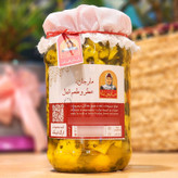 ترشی زعفرانی مارجان ترکیبی از مواد درجه یک شامل زغفران-گل کلم-خیار-فلفل سبز-نمک سنگ دارای سلولز زنده-سبزیجات معطر شمال-هویج-ادویه مخصوص ترشی مارجان و.... این محصول کاملا ارگانیک و خانگی میباشد و در بسته بندی پت از جنس پلی اتیلن به دست مصرف کننده خواهد رسید.ترشی جانان مارجان که طعم نهایی آن پیچیده است با طراوت سبزی و کمی تند بودن آن، این چاشنی را فوق العاده میکند.تمام محصولات مارجان ارگانیک و بدون مواد نگه دارنده است پس بهتره در یخچال نگهداری شود