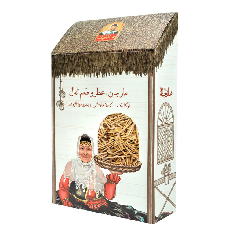 رشته پلویی تفت شده مارجان.سرشار از فیبر و کاملا سالم تهیه شده از آرد گندم دیم کاملا خانگی بدون جوش شیرین و تخمیر به روش سنتی و خانگی بدون هر گونه افزودنی بسیار خوش تفت است