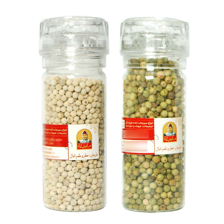 ست دانه های فلفل سبز فلفل سفید مارجان محصولی با کیفیت از بهترین نوع دانه های فلفل وارداتی موجود در بازار همراه با بسته بندی مخصوص سرآسیاب دار ساخته شده از جنس پلی اتیلن بسیار کارا و مقاوم دانه های فلفل در آن براحتی خرد میشود مناسب اشپزی و آشپرخانه.