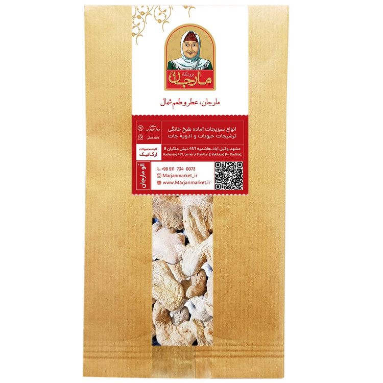 زنجبیل مارجان کاملا خالص تهیه شده از بهترین محصول موجود در بازار در ظرف پت مناسب آشپزی و آشپزخانه.طرز مصرف جهت تهیه چای زنجبیل یک قاشق چایخوری پودر خشک زنجبیل ، را به همراه آب جوش با حرارت ملایم جوشانده و سپس کمی عسل به آن اضافه کرده و آن را میل نمایید .