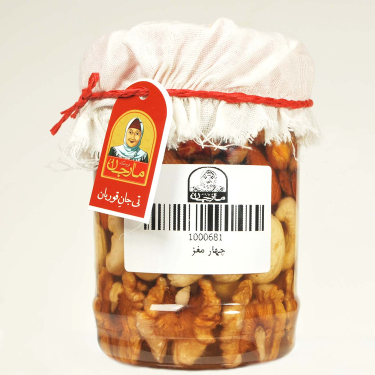 معجون چهار مغز مارجان حاوی عسل-بادام درختی-پسته-بادام هندی-مغز گردو ترکیبی از بهترین و تازه ترین مغز های مقوی میباشد که دارای خواصی فوق العاده مقوی و انرژی بخش وجلوگیری از ضعف جسمانی و میان وعده ای کامل میباشد.