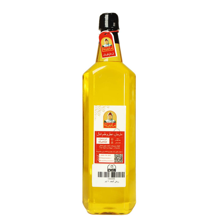 روغن کنجد مارجان، روغنی است که از دانههای تازه و بکر کنجد، گرفته میشود محصول فوق تهیه شده از بهترین مواد اولیه ارگانیک با دستگاه تمام اتوماتیک تا مرحله بسته بندی در بسته بندی پت دارای استاندارد فود گرید و مخصوص نگه داری مواد غذایی.محصول فوق کاملا طبیعی و بر پایه گیاهی، بدون مواد افزودنی و نگهدارنده میباشد.روغن کنجد دارای فواید زیادی برای سلامت بدن و پوست و مو است. روغن کنجد سرشار از مواد مغذی و ویتامین E است. این ماده به علت داشتن ترکیباتی مانند: توکوفرول، پینورسینول، سزامولین, سزامینول، سسامول خاصیت آنتی اکسیدانی و ضدالتهابی دارد.