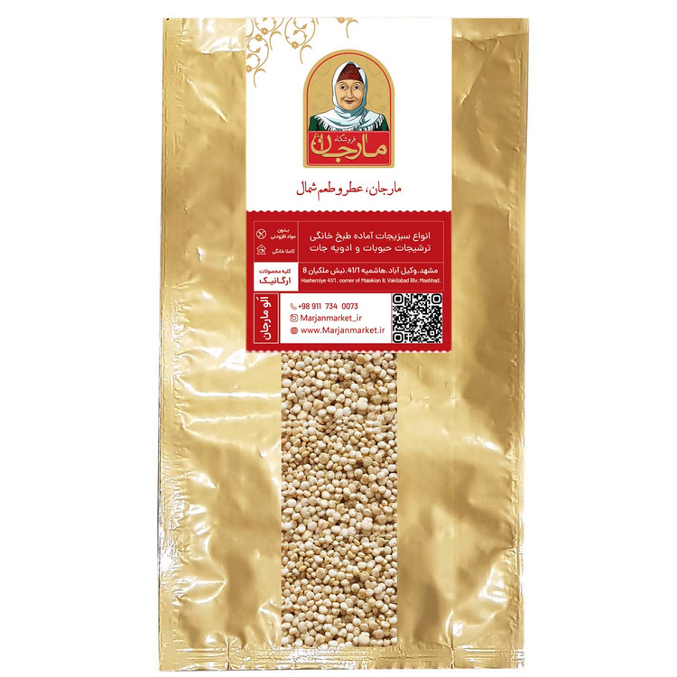 کینوا سفید مارجان کاملا پاک شده و تمیز میباشد کینوا سرشار از کربوهیدرات و کلسیم است و به خوبی انرژی مورد نیاز بدن را تامین مینماید محصول فوق کاملا ارگانیک و تهیه شده از بهترین نوع کینوا محصول کشور پرو میباشد.